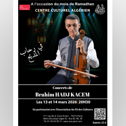 A l'occasion du mois de Ramadhan - Soirées animées pars Brahim HADJ KACEM- Vendredi 13 et samedi 14 mars 2026 à 20h30