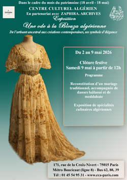 Dans le cadre du mois du patrimoine (18 avril – 18 mai) - "Une ode à la Blouza algérienne. De l’artisanat ancestral aux créations contemporaines, un symbole d’élégance - Exposition dédiée à la Blouza algérienne