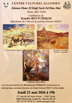 "Etienne Dinet, El Hadj Nacir Ed Dine Dini" (Paris 1861-1929), thème d’une conférence de Koudir BENTCHIKOU autour de l’œuvre et la vie de ce peintre et écrivain - Jeudi 21 mai 2026 à 19h (2)