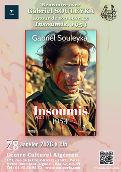 Roman d’apprentissage et de révolte, Insoumis donne voix à celles et ceux que l’Histoire a souvent laissés dans l’ombre. Dans une langue à la fois sobre et bouleversante, Gabriel SOULEYKA tisse un récit incandescent où l’amour filial, la dignité blessée et la mémoire des disparus vibrent à chaque page. Un chant d’honneur et de résistance porté par une héroïne inoubliable. Ce premier volume aborde la guerre d'Algérie à travers les yeux d'une jeune fille, qui va incarner pleinement la révolte de tout un peuple.