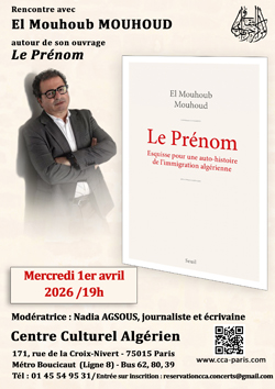 Rencontre avec l’écrivain El Mouhoub MOUHOUD autour de son ouvrage Le Prénom - Mercredi 1er avril 2026 à 19h