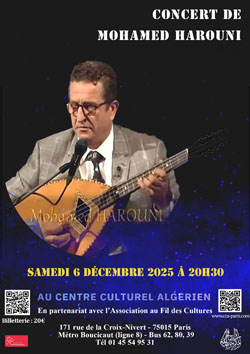 Reporté à une date ultérieure : Concert de musique chaâbi de Mohamed HAROUNI - Samedi 6 décembre 2025 à 20h30